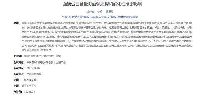 [1]姚梦迪,李明,郭波莉.面筋蛋白含量对面条质构和消化性能的影响[C]//中国食品科学技术学会(Chinese Institute of Food Science and Technology).中国食品科学技术学会第十五届年会论文摘要集.中国农业科学院农产品加工研究所农业部农产品加工综合性重点实验室;,2018.