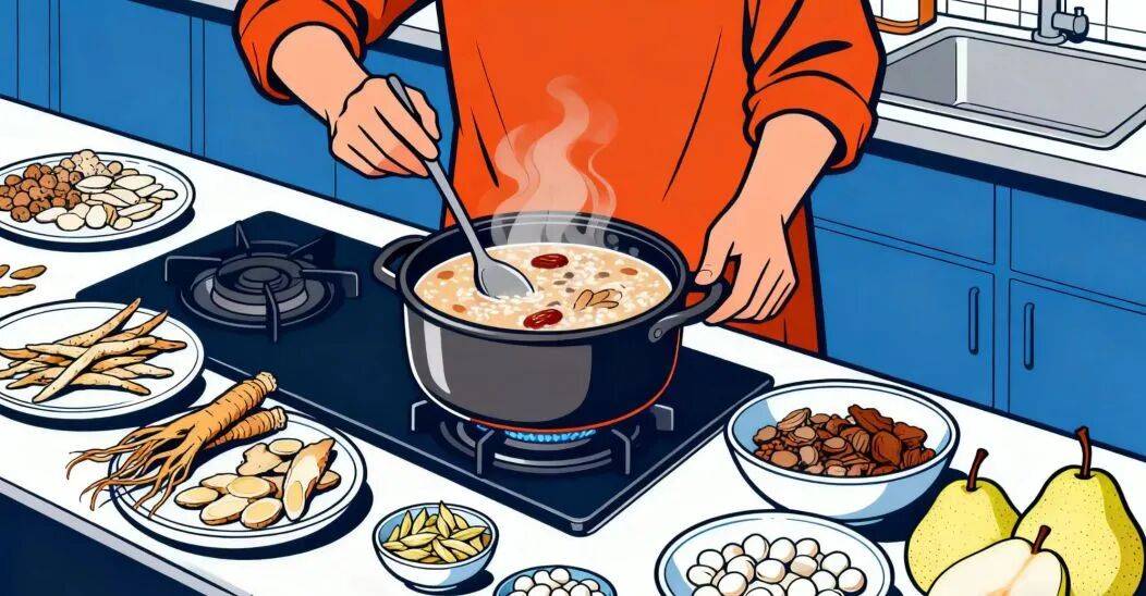 药膳调理需兼顾“润燥”与“祛寒”,根据体质选方更显成效。对气虚易感冒者,可用黄芪10克、生姜3片、大枣5枚煮水代茶,黄芪补气固表,生姜散寒,大枣健脾,三者合用可增强卫气;对阴虚燥咳者,取麦冬10克、玉竹10克、川贝3克与雪梨同炖,麦冬、玉竹养阴润燥,川贝润肺止咳,雪梨生津,共奏滋阴防燥之效;对脾胃虚寒者,可将山药30克、莲子15克、芡实15克与大米同熬成粥,山药健脾,莲子固肾,芡实止泻,助脾胃健运以培补正气。