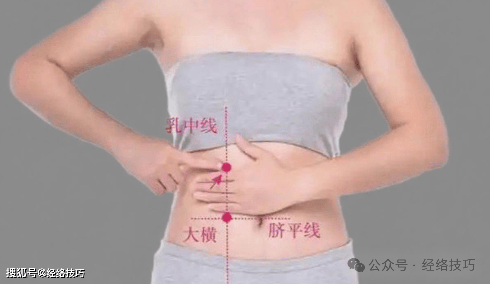 中脘穴就在腹部正中间,大概在肚脐向上,四指宽的地方。用自己的手量一下,四指并拢,的宽度就差不多,这里是胃部气机,容易聚集的位置。