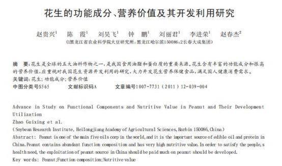 [1]赵贵兴.花生的功能成分、营养价值及其开发利用研究,安徽农学通报(下半月刊),2011-06-25