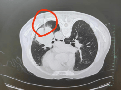 穿刺活检一项有创操作,就是利用一根空心针穿入病灶内部,取出一部分病灶组织,再由病理科医生给出病理诊断。肺部由于存在大量气体,所以无法在超声下观察肺结节,一般需要在CT引导下进行肺部穿刺活检。