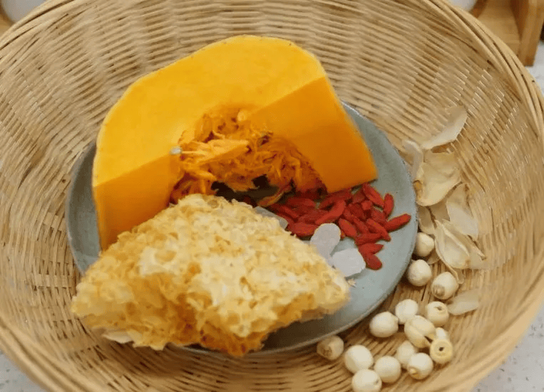 南瓜中含有丰富的果胶,类胡萝卜素、矿物质等元素,有清热解暑、补中益气的作用,煲汤的时候可以加入银耳、莲子、百合等滋养的绝配食材,味道绝佳。