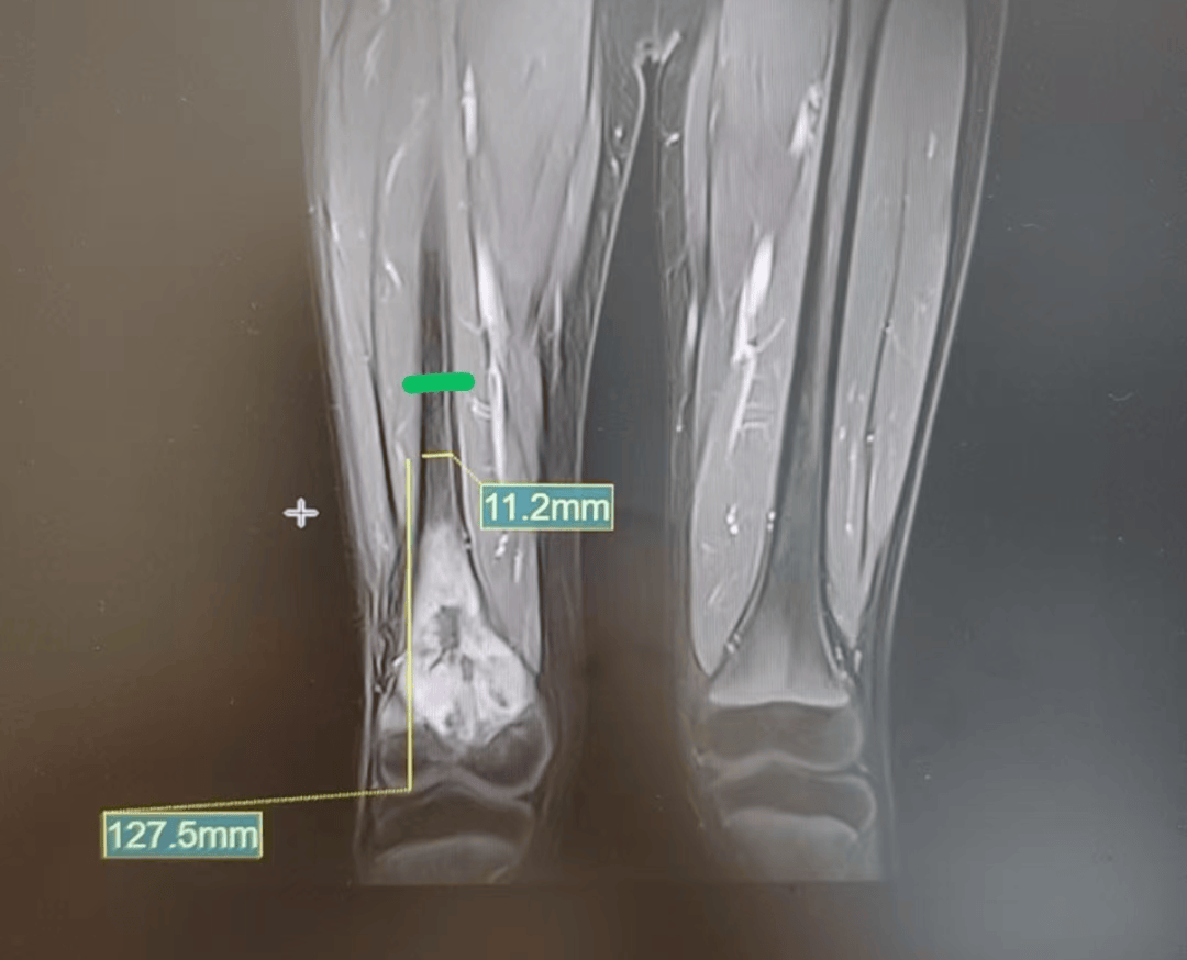 检查结果犹如晴天霹雳:X片显示小宇的右侧股骨内侧干骺端异常密度;MRI提示右侧股骨占位性病变。“医生告诉我们,孩子可能是骨癌,情况不太乐观,建议立即转诊到更专业的儿童医院。”小宇妈妈说。