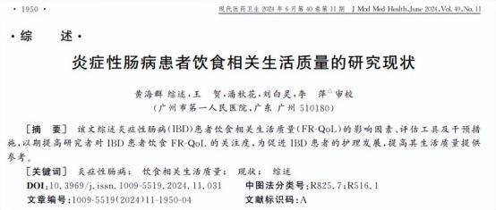 [1]黄海群.炎症性肠病患者饮食相关生活质量的研究现状,现代医药卫生,2024-06-15