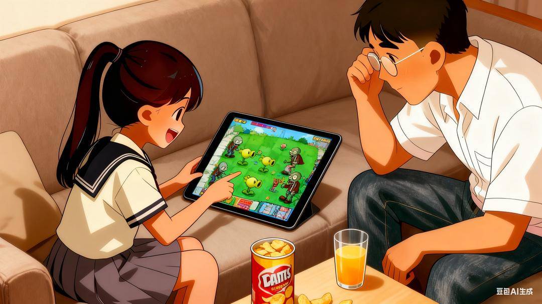 女儿小时候也爱打游戏,我没说“不许玩”,反而问她:“今天老爸陪你玩一晚上游戏,怎么样?”她欢呼雀跃,晚饭都吃得比平时快。我早早打开电脑,陪她玩《植物大战僵尸》。她一会儿兴奋地喊“僵尸要过来了!快种向日葵!”,一会儿皱着眉调整植物阵型,我在旁边帮她递水,偶尔夸一句“这个布局真聪明”。不知不觉,窗外天就亮了,她竟然把游戏打通关了。我故意说:“你这也太厉害了,老爸自愧不如!”