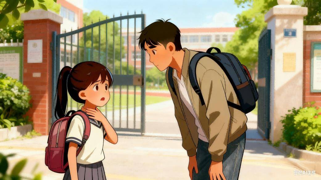 小学三年级,我开始负责接送她上学。第一天到校门口,她突然慌了:“老爸,我忘带红领巾了!你帮我买一条呗,不然老师要批评我的!”