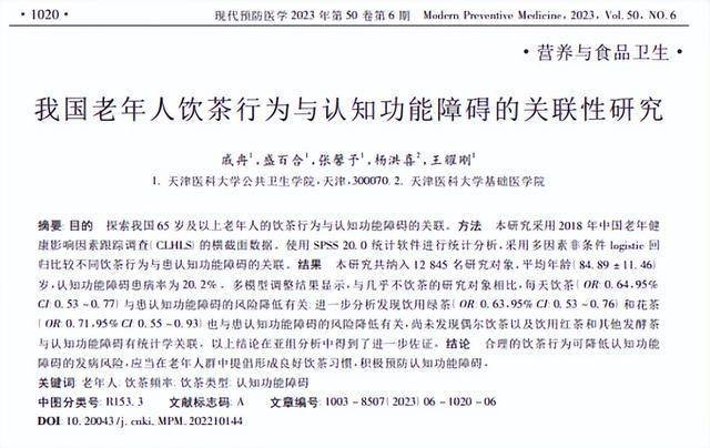 我国老年人饮茶行为与认知功能障碍的关联性研究戚冉., 现代预防医学 ,2023-03-25