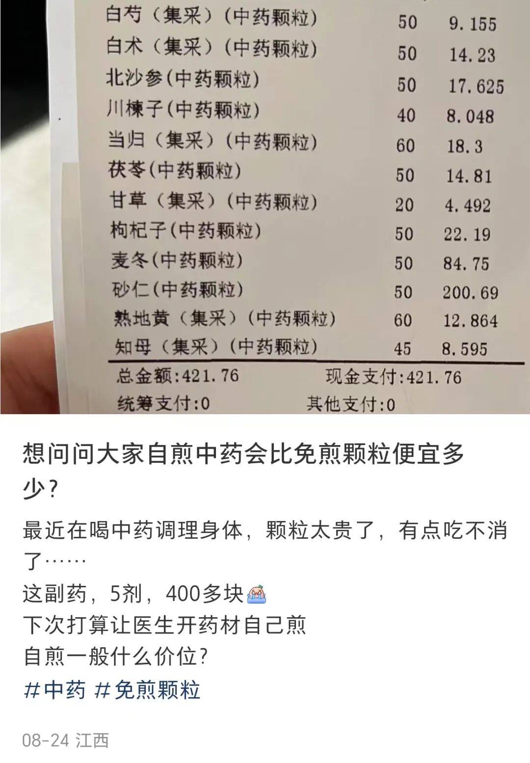 ◎ 大众普遍认为中药配方颗粒价格贵。/ 图:网络截图