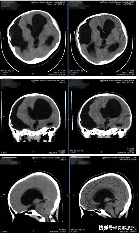 2025年7月,13岁的小廖因“进行性加重性行走障碍,左侧足外翻,右侧肢体活动不利、抖动”找到北京航空总医院肖庆主任。这本应享受校园生活的年纪,她却已经在病痛折磨中度过了十年之久:3岁时发现右颞蛛网膜囊肿,当地医院行开颅囊肿剥离手术;4岁时囊肿复发增大,又行囊肿-腹腔分流术;9岁时出现分流管感染,不得不行分流管拔除术并植入囊肿储液囊(Ommaya囊)……随后多年,虽然经历了多次手术和抗感染治疗,小廖的病情仍然逐渐加重——脑室系统扩张、右颞囊肿张力不断增加、中线结构移位明显。这不仅影响了她的运动功能(行走障碍、肢体活动不利),也影响了她的生活技能和认知发展。