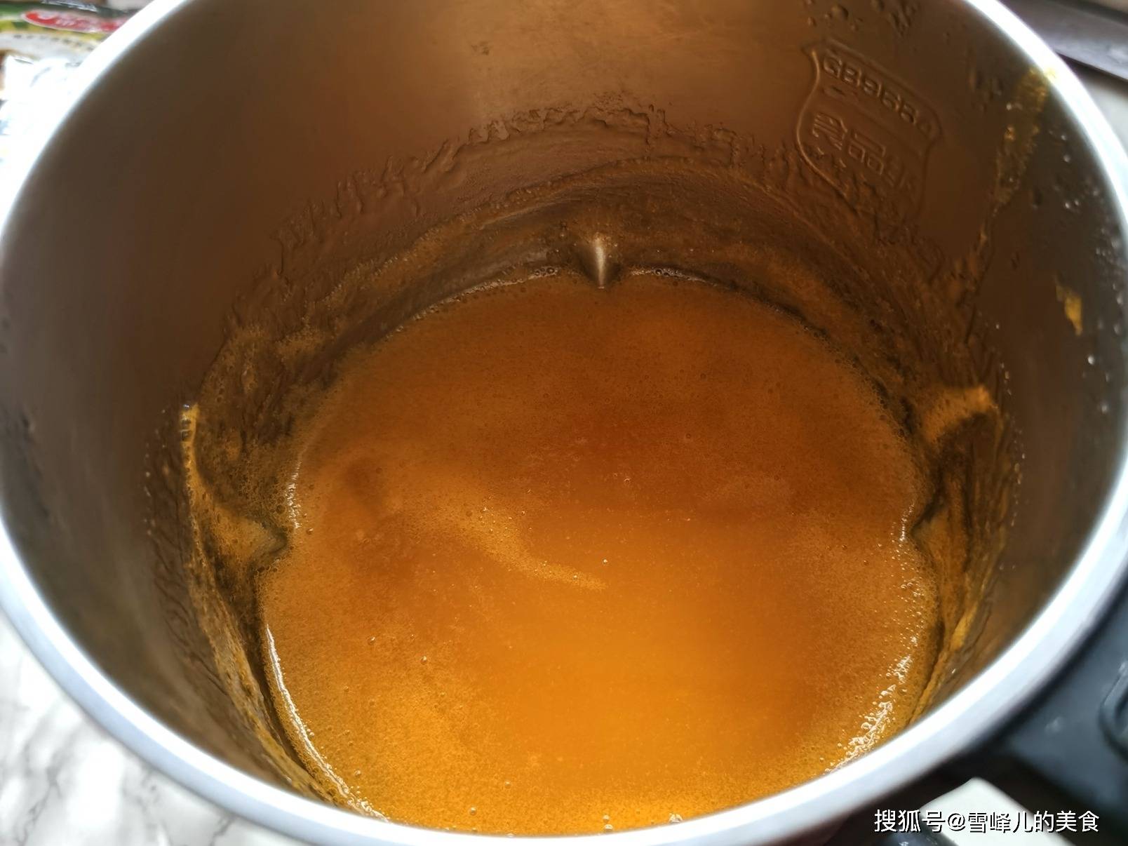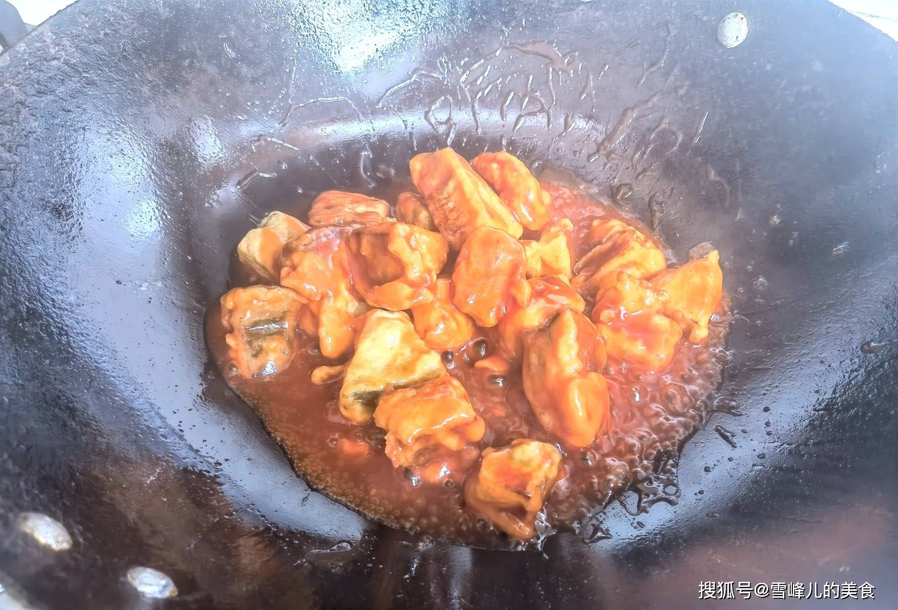 第三步:另起锅,锅里放入少许清水,加入2勺番茄沙司,1勺糯米香醋,1勺白糖,小火熬至浓稠,把炸好的南瓜块放入浓汁中使每一块南瓜都均匀地蘸上糖醋汁,就可以关火出锅了。