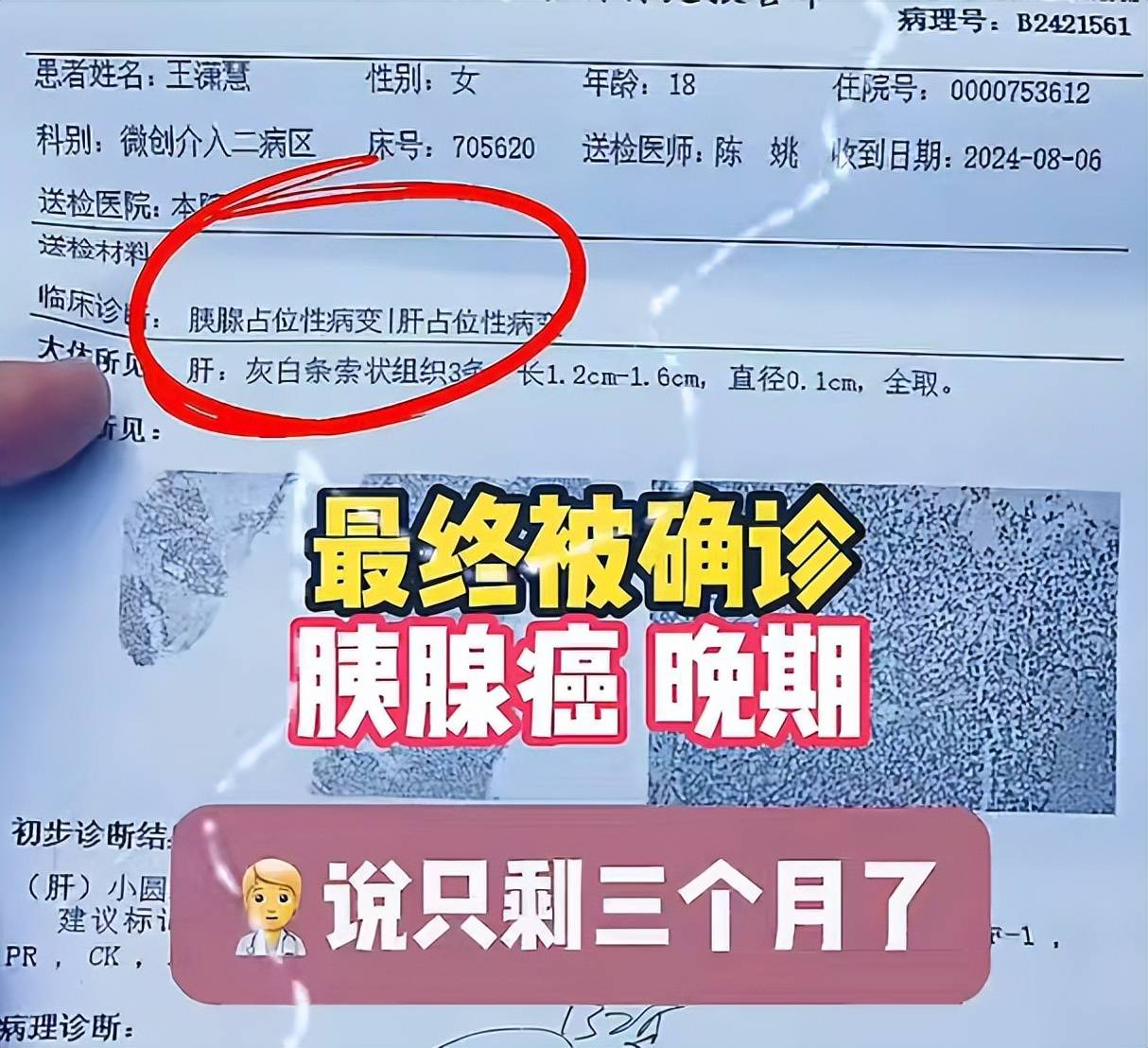 河南新乡的18岁花季少女王潇慧,只因不吃饭减肥,就在高考前夕被确诊胰腺癌晚期!