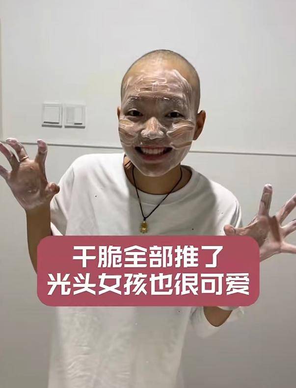 为了方便化疗,头发都给剃光了,整个人变得又黄又瘦,和以前完全判若两人。