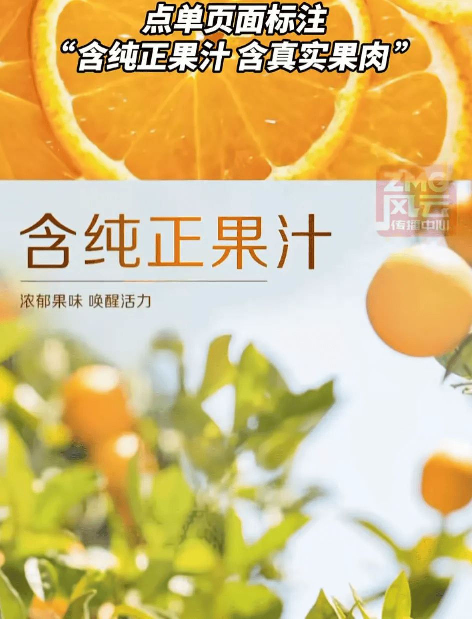 点单页面标注:“含纯正果汁、含真实果肉”。