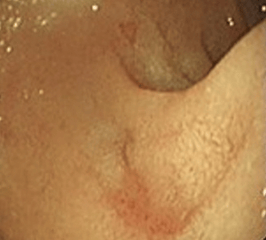 术后再次追问病史,患者才回忆起大约5个月前曾吃过一次鱼,但当时并无明显不适。之后进行了上消化道内镜检查,发现有慢性炎症,并在十二指肠球部见到一处愈合的瘢痕,提示这是鱼刺迁移的可能通道。不过在胃或十二指肠内均未发现瘘管。胆囊病理结果提示慢性胆囊炎。