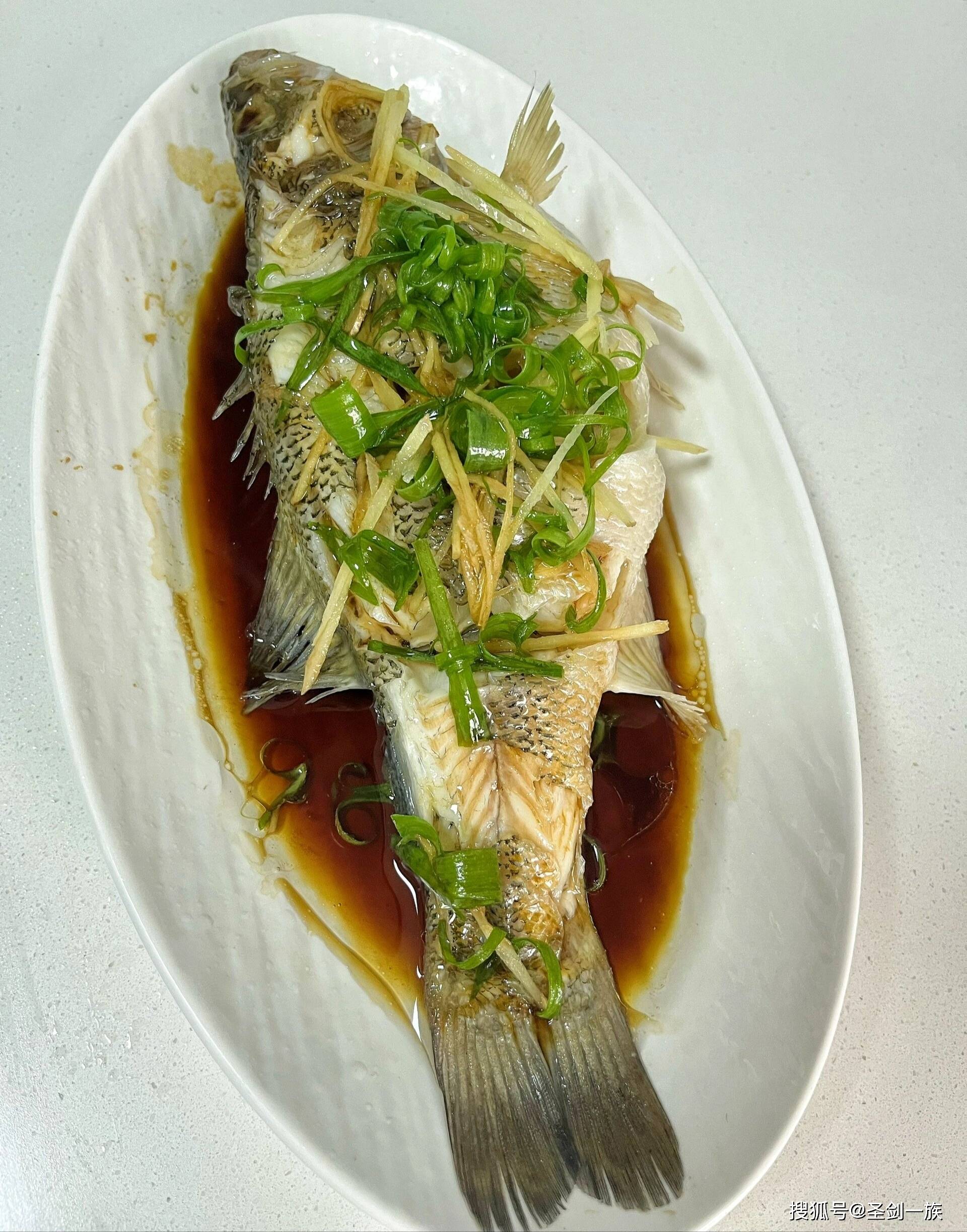5. 蒸制鲈鱼:将腌制好的鲈鱼放入蒸盘中,放入已经烧开的蒸锅中,用中大火蒸约8-10分钟。蒸鱼的时间要根据鱼的大小和厚度进行调整,蒸至鱼肉完全熟透即可。