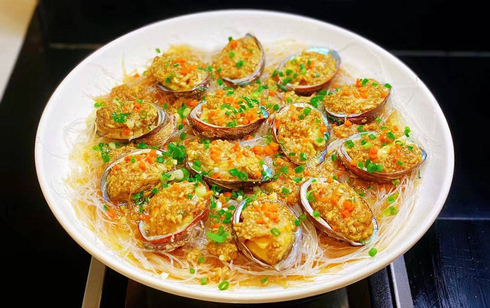 1、蒜蓉粉丝蒸是小海鲜的通用做法。这里用的是小鲍鱼,换成其他的也可以。先将其逐一洗刷干净,清理好。