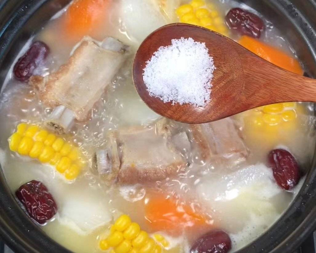 4、在锅里淋一点油,肋排倒里边,炒一会儿,香味煸出来,往里边添上热水,炖一个钟头。接着将山药等食物放进去,再咕嘟四十分钟,彻底炖透。补点盐调味即可。