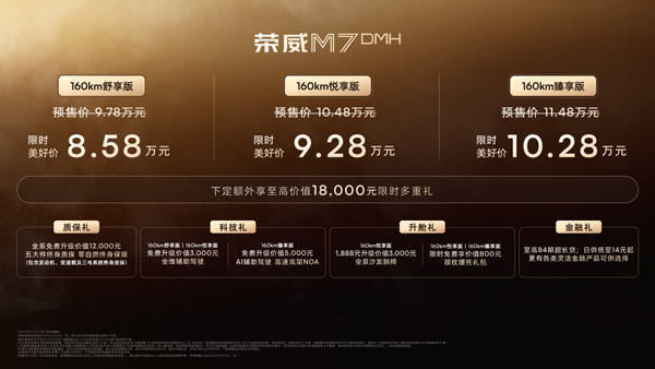 “三电(终身质保)行业里基本上慢慢越来越多车企在做,但(再加上)混动车的两大件,这件事大家一直没有去做,我们来做。”钱漾表示,提出“五大件终身质保”,正是源于荣威M7 DMH预售开启后,与一线用户的沟通和研究。