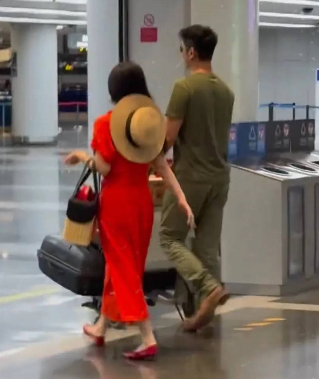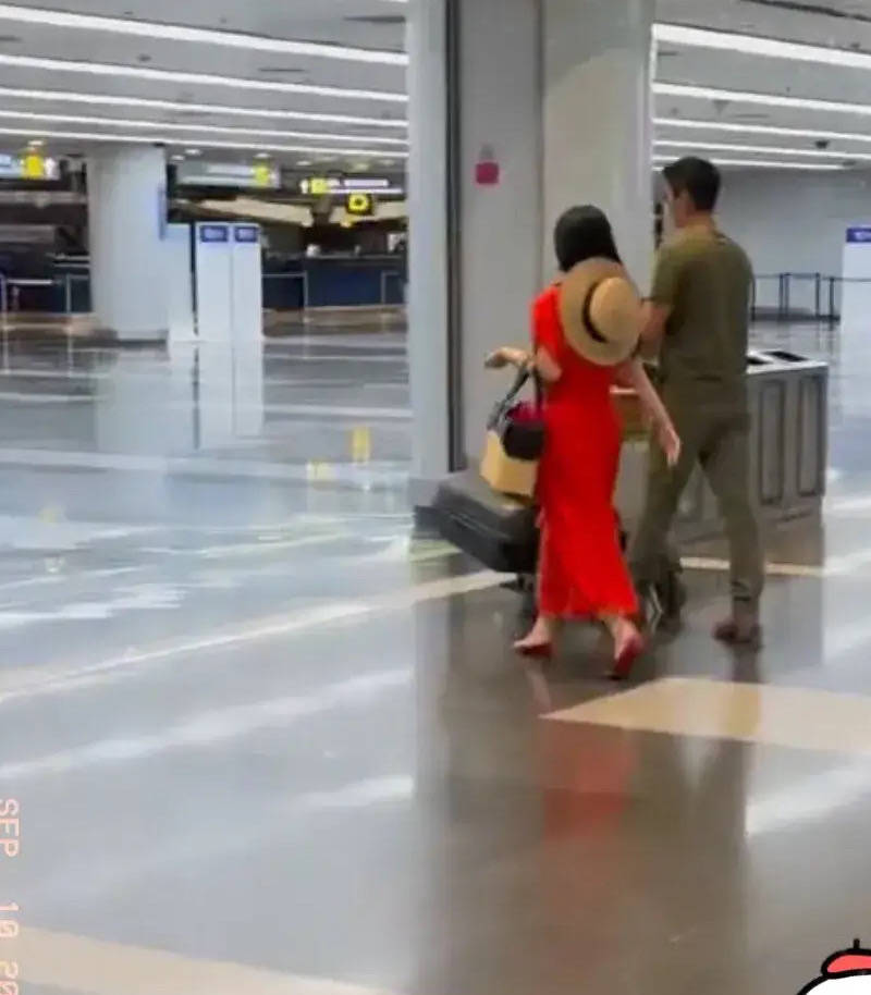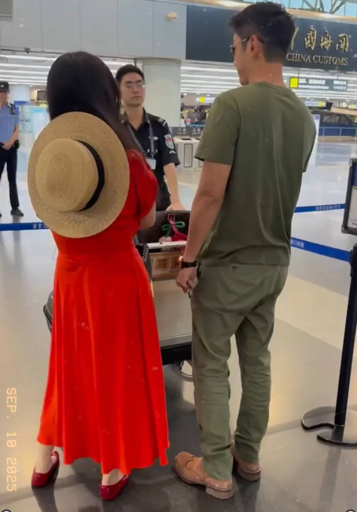 有网友在机场偶遇霍思燕夫妇,霍思燕打扮的像个美娇娘。穿红裙配红鞋,特别喜庆。杜江站在一边像个保镖。