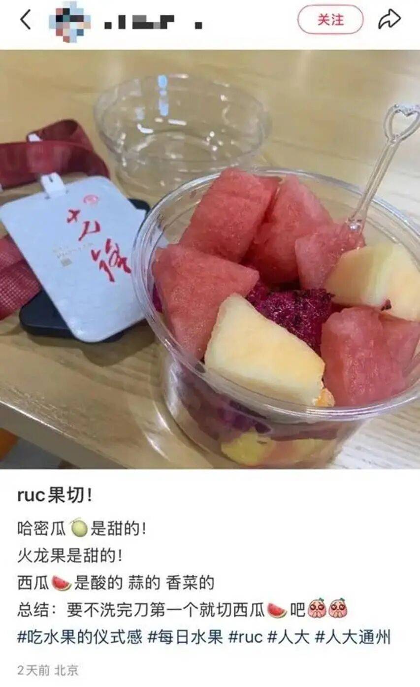 很快,有学生发帖,表示在通州校区食堂吃到了果切。