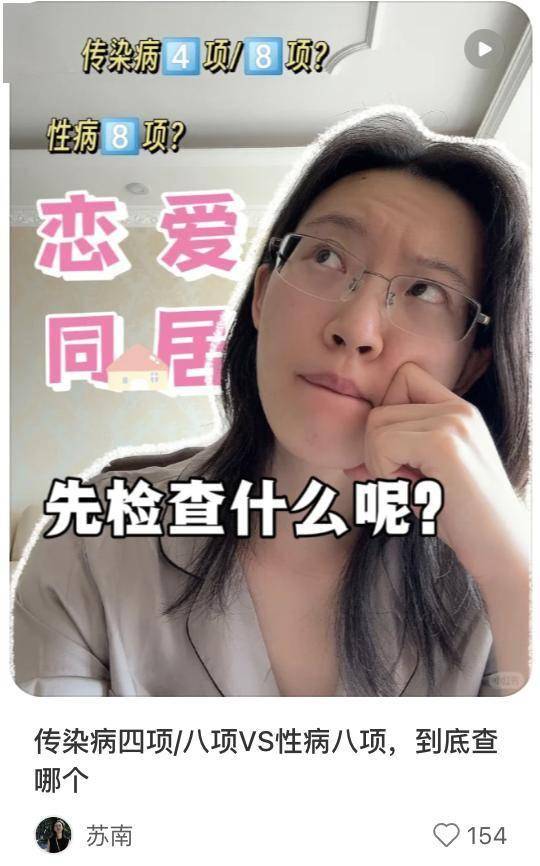 基于这种需求,今年7月,苏南在小红书上发布了两期呼吁大家进行恋爱前体检的视频,并对该进行的体检项目进行了科普。