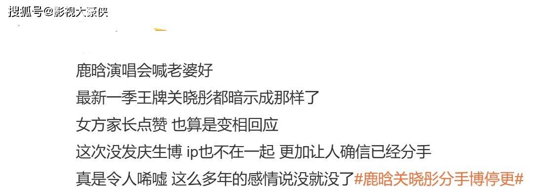 零点没有祝福,女方父亲点赞双方分手微博,鹿晗关晓彤分手博宣布停更等等,这一系列还不能说明两人已经分手的消息,只能说cp粉们执念太深。
