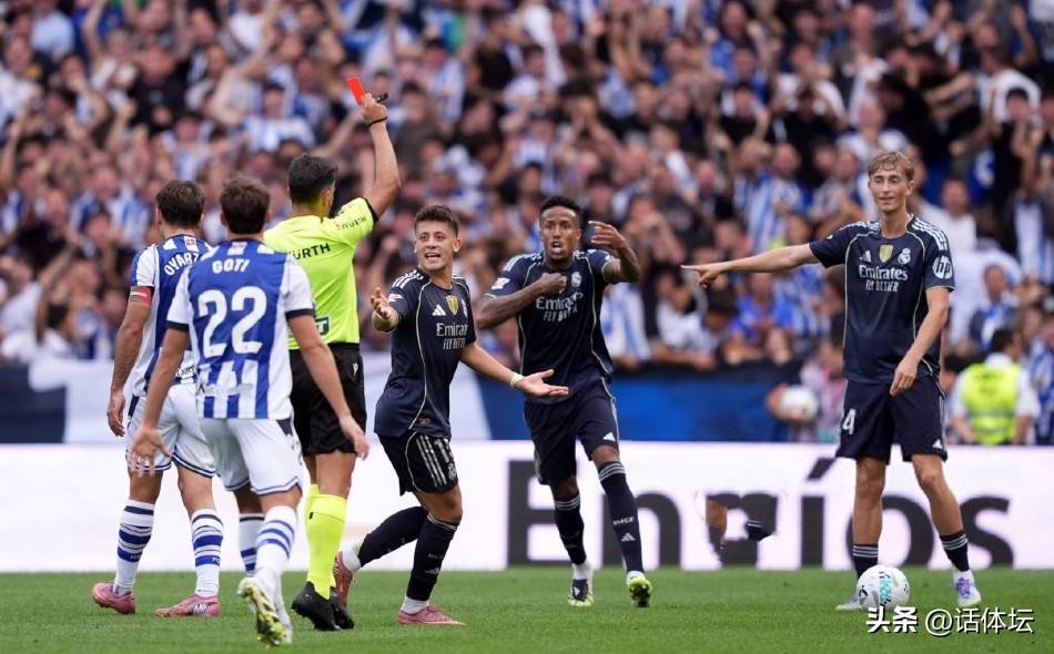 第24分钟,维尼修斯在左路制造任意球机会。赫伊森精准的头球摆渡找到米利唐,巴西中卫近在咫尺的头槌攻门再次被雷米罗神勇化解。然而比赛在第32分钟出现重大变故,奥亚萨瓦尔在反击中被赫伊森战术犯规放倒,主裁判曼萨诺直接出示红牌将皇马后卫罚下。这个略显严厉的判罚引发皇马将帅的强烈抗议,但裁判维持原判。