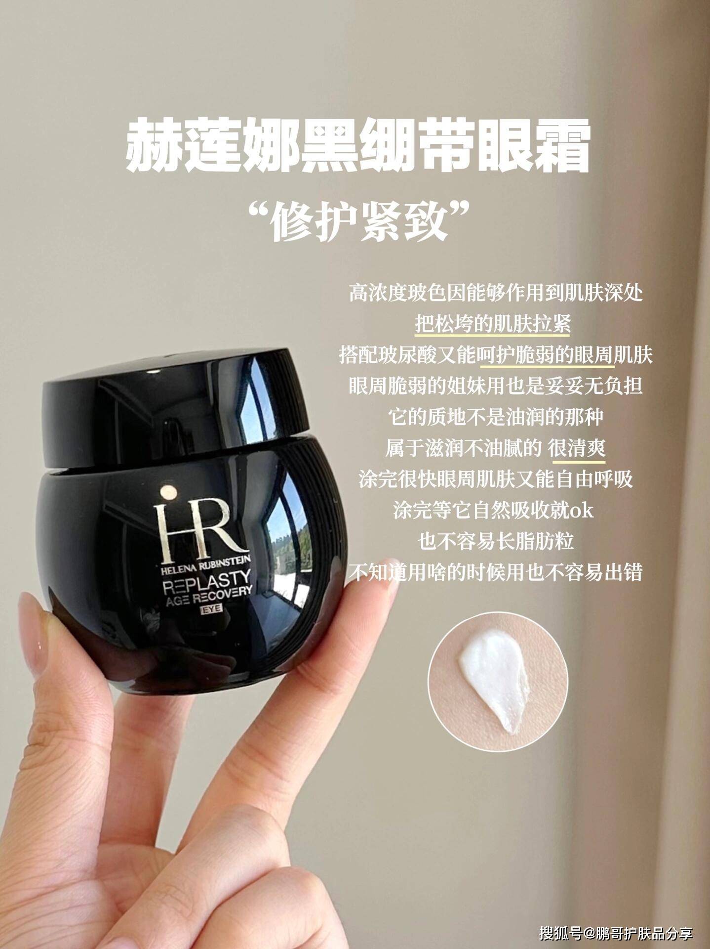 适合眼周肌肤敏感、状态不稳定的姐妹,莹润的乳霜质地,抹开像给眼周紧紧裹了一层绷带,偶尔眼周肌肤闹情绪,用它涂个两三天就能改善好多,换季爆干纹、卸妆后红敏等问题它都能一一守护。