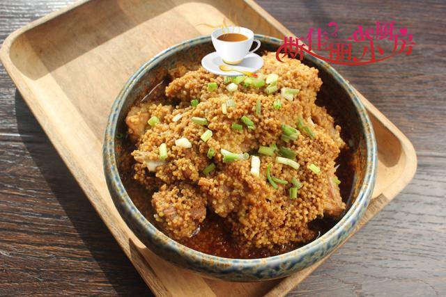 推荐菜谱【 小米蒸排骨】 原料:小米 排骨 姜 葱花 料酒生抽 淀粉 蚝油盐