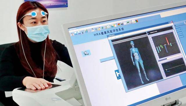 2021年3月17日,河北秦皇岛市海港区服务里社区的人工智能睡眠管理中心,人们体验HRA健康风险评估系统睡眠检测。图/视觉中国