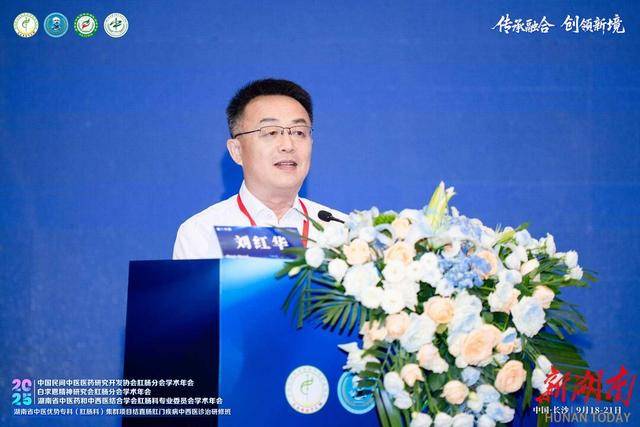 湖南中医药大学副校长刘红华出席会议并致辞,他表示,学校将一如既往地为中医肛肠学科的建设发展保驾护航,持续投入人才、平台与技术资源,努力将湖南省肛肠事业推向更高发展高度。