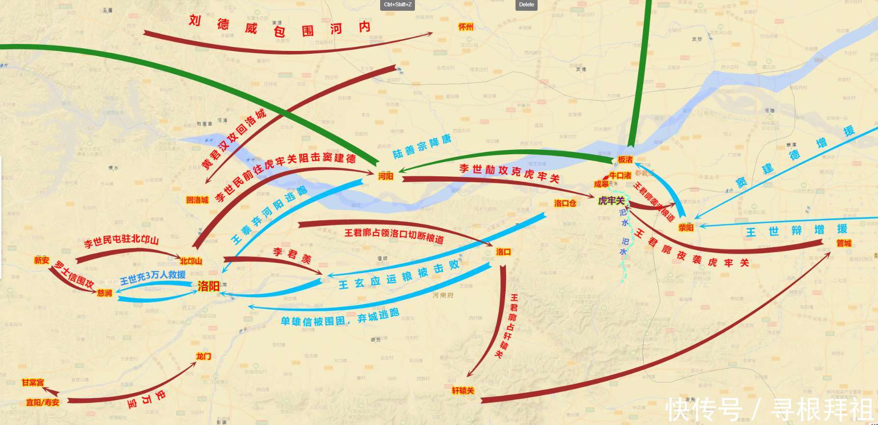 - 东线:王君廓夺取洛口,切断王世充粮道,并包围虎牢关;