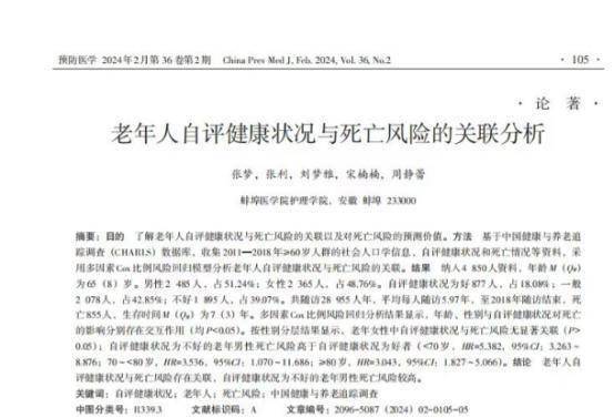 [1]张梦,老年人自评健康状况与死亡风险的关联分析,预防医学 ,2024-2