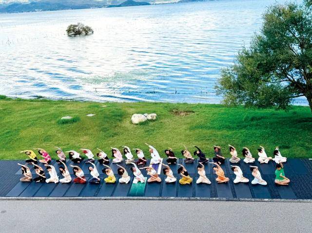 苏仪带领小愈悦冥想营成员团体在大理做呼吸、冥想、疗愈。图/受访者提供