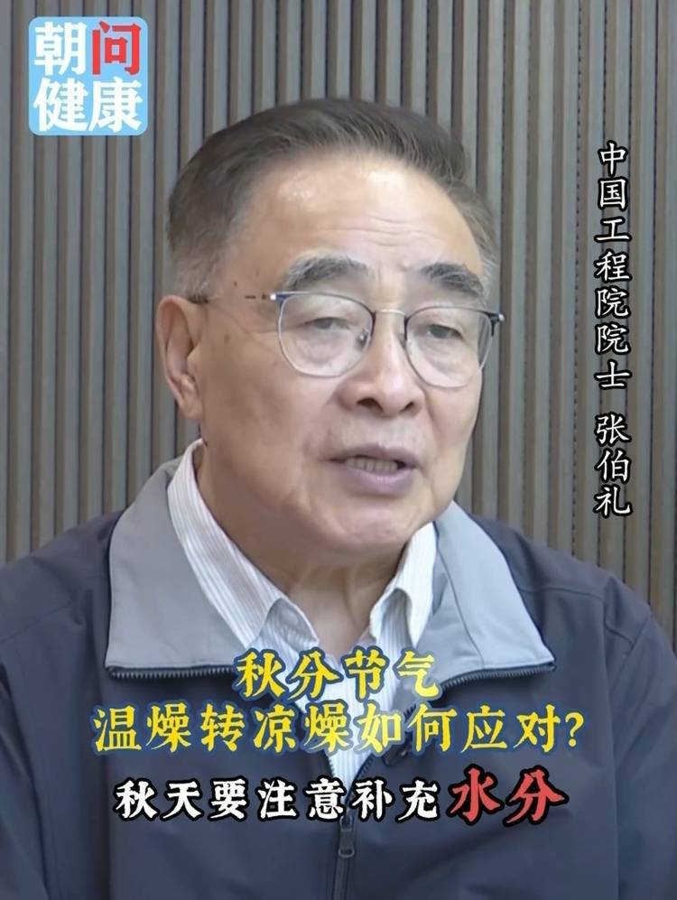 中国工程院院士 张伯礼:民间有一种叫“春捂秋冻”的说法,但是“秋冻”要掌握一个度,不能过度。如果天气比较凉了,例如低于18℃,在这种情况下,要适当增加衣物。百病从寒生,而阳气在足、在下,特别是脚、踝,还有膝关节、腰这些部位要特别注意。秋天要注意补充水分,也可以秋梨加点冰糖煮水喝,或者加陈皮、加点冰糖、加点蜂蜜,一块煮水喝。可以防止秋燥,比较有效。