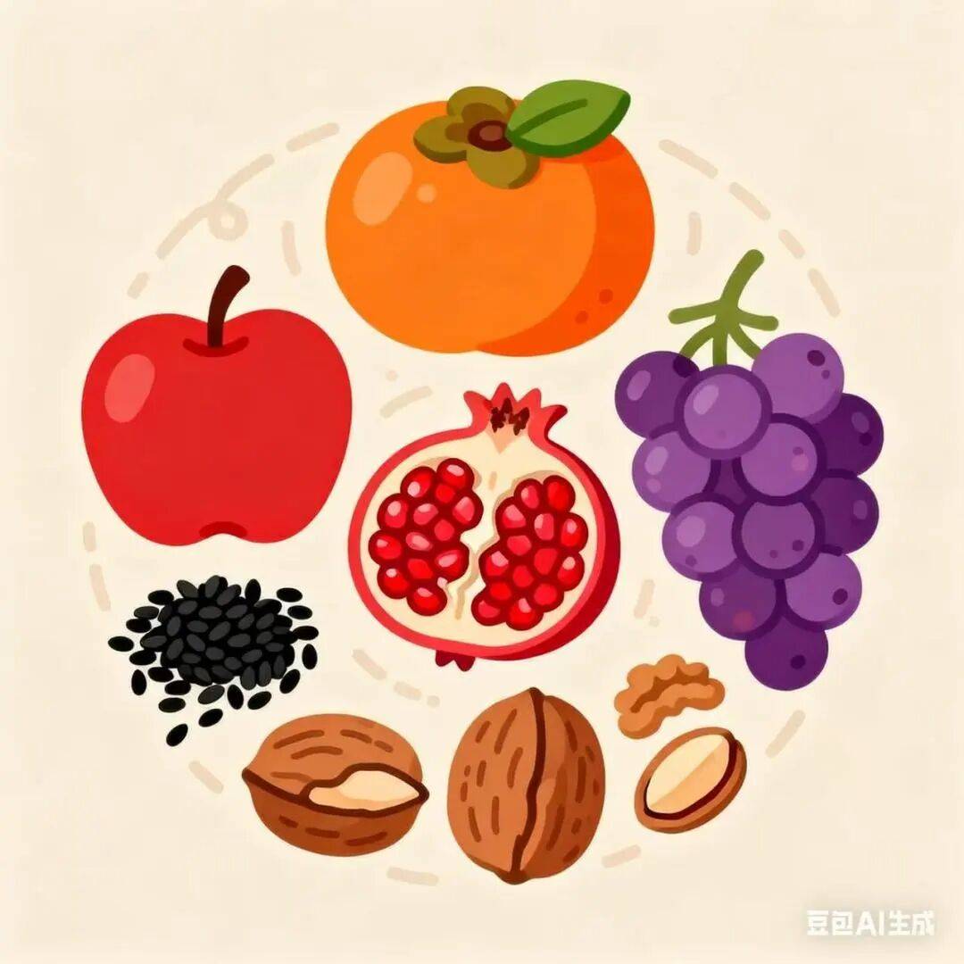 推荐食材:柿子、苹果、葡萄、石榴、梨、南瓜、莲藕、银耳、豆腐、芝麻、核桃、糯米、蜂蜜、乳制品、羊肉、柠檬等。