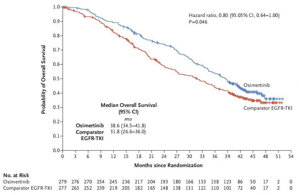 [2]Ramalingam SS, Vansteenkiste J, Planchard D, et al. Overall Survival with Osimertinib in Untreated, EGFR-Mutated Advanced NSCLC. N Engl J Med. 2020 Jan 2;382(1):41-50.