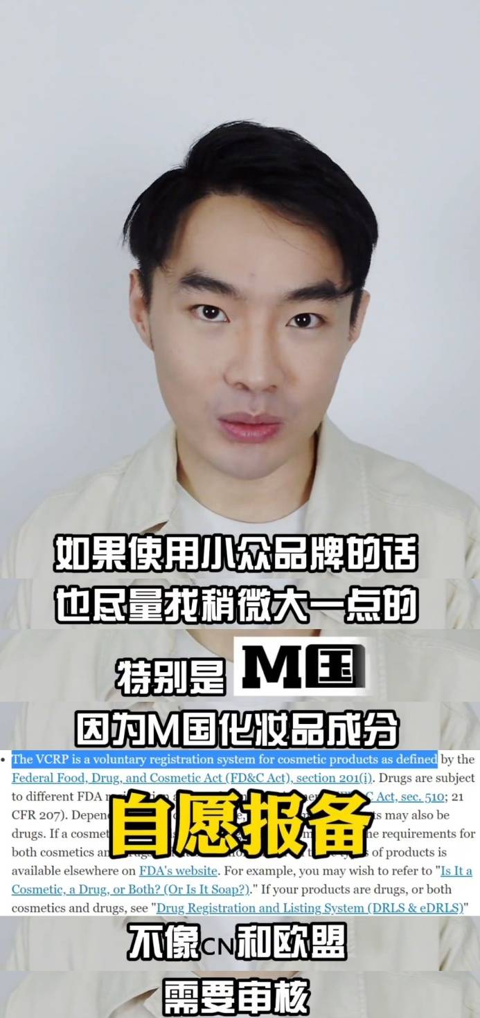 如果使用小众品牌的话,也尽量找稍微大一点的,特别是美国。因为美国化妆品成分是自愿报备,不像中国和欧盟需要审核。比如中国和欧盟禁掉了1300种化学物质作为化妆品成分,而美国只禁掉了11种。