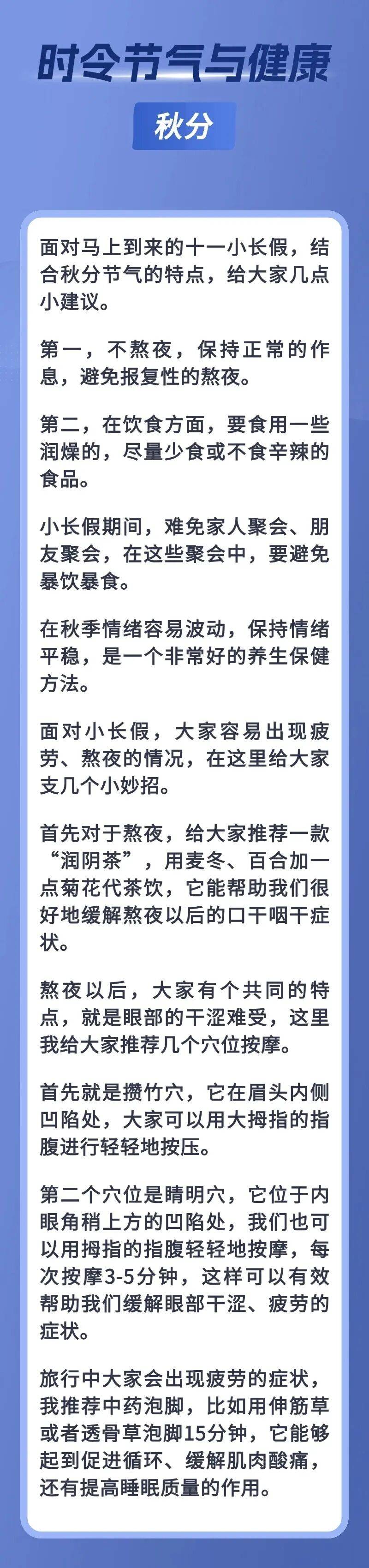 时令节气与健康|西苑医院专家教您秋分养生小技巧 创始人 更新于 2025-09-24 11:46:13 首发于 2025-09-24 11:46:38 健康知识 0 内容来源:中国网、国家卫生健康委员会官网 未经允许不得转载: 中医问答网 » 时令节气与健康|西苑医院专家教您秋分养生小技巧