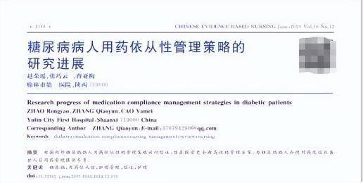 [1]赵荣瑶.糖尿病病人用药依从性管理策略的研究进展,循证护理 ,2024-06-25