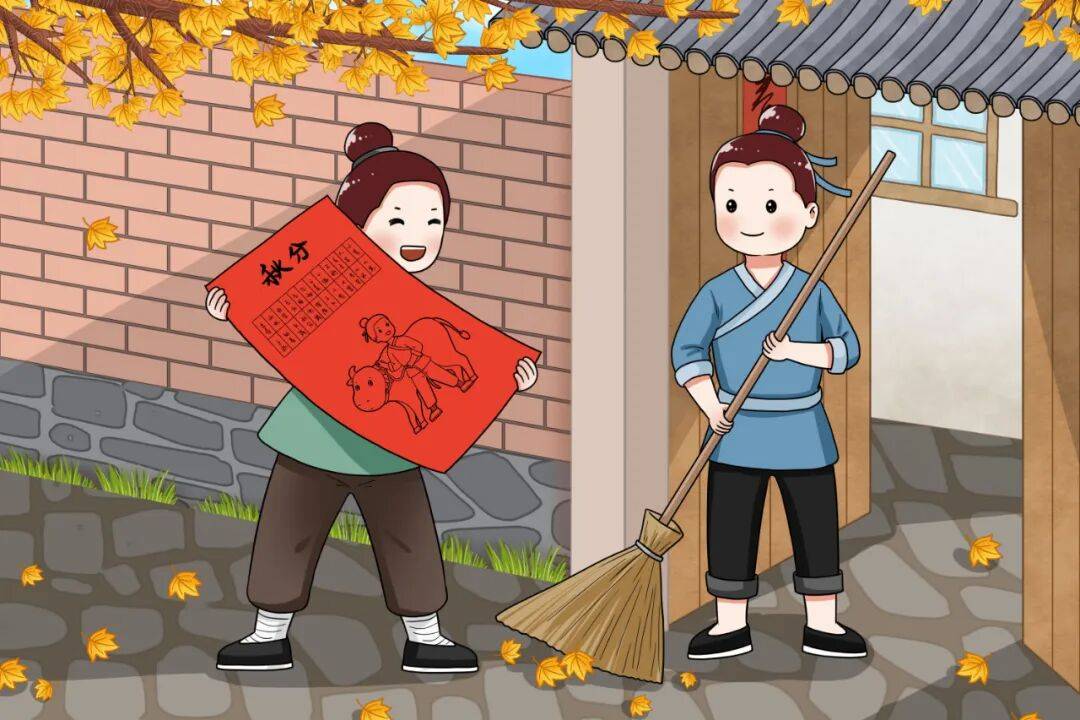 秋分那天,有挨家送秋牛图的人。“秋牛图”是把二开红纸或黄纸印上全年节气,还要印上农夫耕田图样。