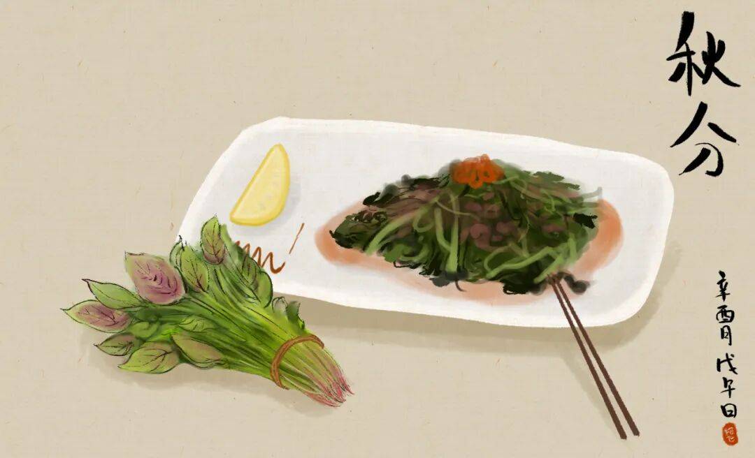秋分这天去采摘秋菜,在田野中搜寻时,多见是嫩绿的,细细棵,约有巴掌那样长短。采回的秋菜一般家里与鱼片“滚汤”,名曰“秋汤”。