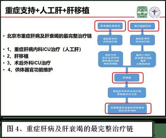 如今,科室已形成“ICU+人工肝+肝移植”的完整治疗链(见图四),为全国重症肝病及肝衰竭患者搭建起最全面的救治体系。此外,科室配备无创呼吸机、有创呼吸机、床旁血滤、ECMO、重症超声等先进医疗设备,能开展无创/有创机械通气、CRRT、人工肝、ECMO等多项技术,每年成功挽救大量急危重患者的生命。