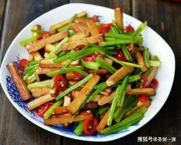 食材:香干200g、芹菜200g、红椒1个、蒜末适量、生抽1勺、盐少许