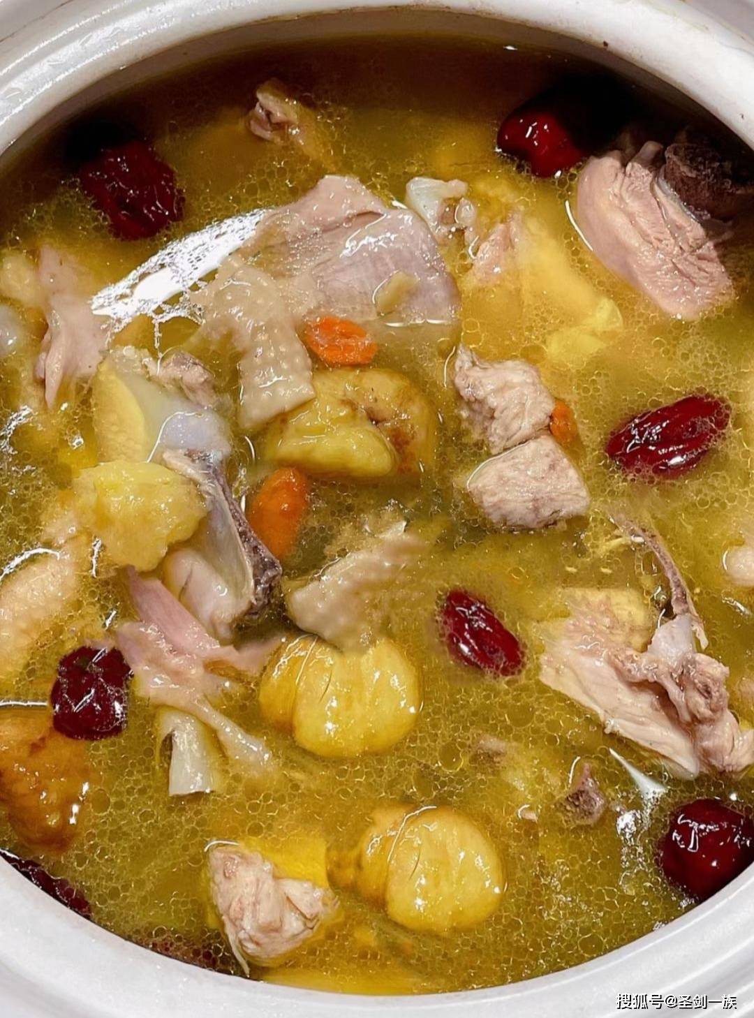 食材:土鸡半只、板栗一碗、红枣几颗、枸杞一小把、葱、姜、盐。