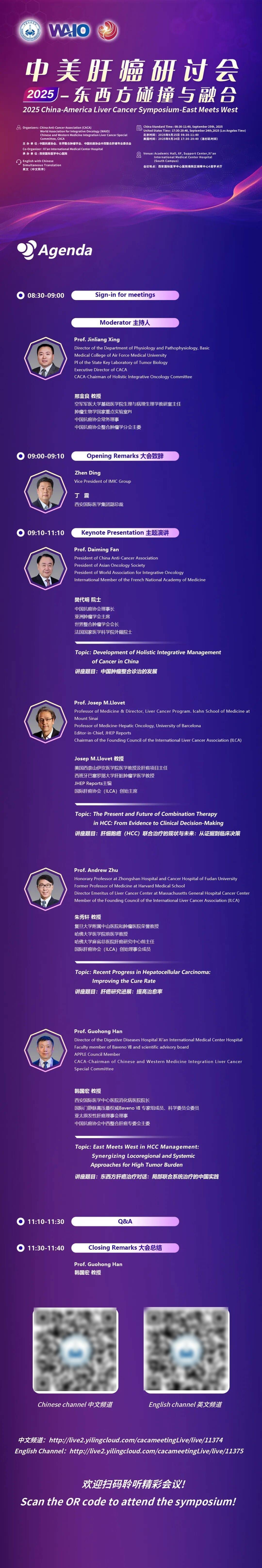 2025中美肝癌研讨会将于北京时间2025年9月25日上午8:30-11:40(美国时间:2025年9月25日晚17:30-20:40)全球直播,邀您共赴肝癌学术盛会!