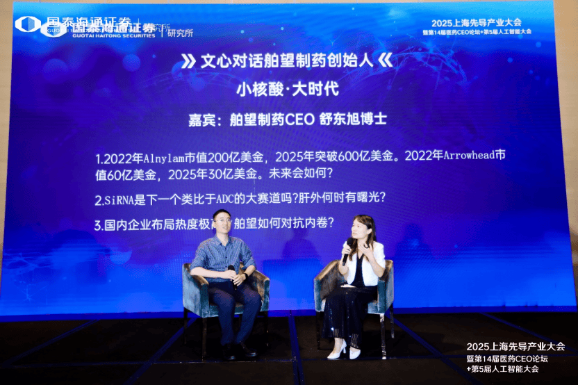 9月3日刚与诺华达成重磅合作的舶望制药CEO舒东旭博士,在与余文心的对话中进一步展开“小核酸·大时代”的讨论: 他提到,小核酸领域的竞争核心在于“递送技术与肝外拓展”,中国企业在肝外靶向(如中枢神经系统、心脏、肌肉、脂肪等)的研发上已具备全球竞争力,未来有望打破海外企业在该领域的垄断。