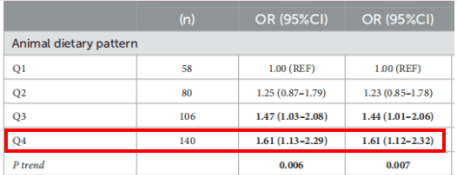 ▪️「动物性饮食模式」(肉类、奶类等摄入高)与乳腺结节存在显著正相关,这种关联在绝经后女性中同样明显。