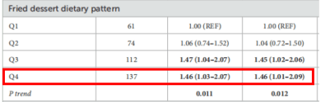 ▪️「油炸食品/甜点饮食模式」与囊性乳腺结节显著正相关,这种关联在绝经后女性中同样明显。