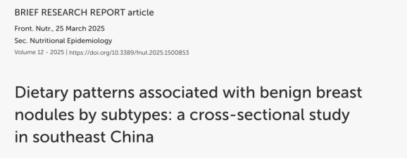 今年 3 月,福建医科大学的研究团队在「Nutritional Epidemiology 」杂志上发表了一篇关于「饮食模式与乳腺结节」相关性的文章,指出不同膳食情况与良性乳腺结节之间可能存在关联 [2]。